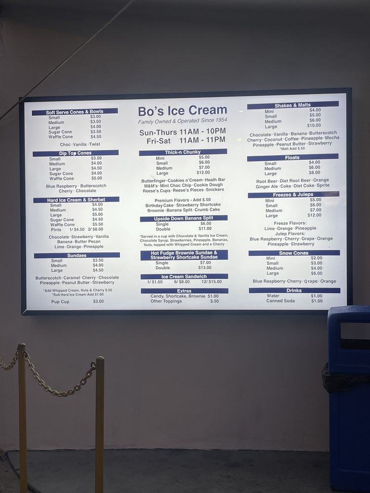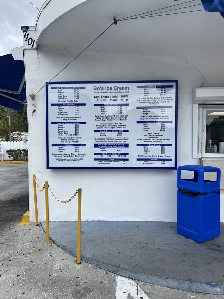 Bo's Ice Cream, located at 7101 N Florida Ave Tampa, FL 33604, is a beloved local spot offering a nostalgic ice cream experience. With options ranging from hard ice cream flavors like Banana, Butter Pecan, and Chocolate to dip top cones like Blue Raspberry and Butterscotch, Bo's has something for everyone. Customers rave about the old-school grab-and-go window, drive-thru convenience, and unbeatable prices. The ambiance is laid-back and inviting, with outdoor seating perfect for enjoying a sundae with friends. The staff may be hit or miss, but bringing cash to tip is appreciated. Whether you're craving a classic vanilla milkshake or a decadent banana split, Bo's Ice Cream delivers on flavor and charm, making it a must-visit in Tampa.